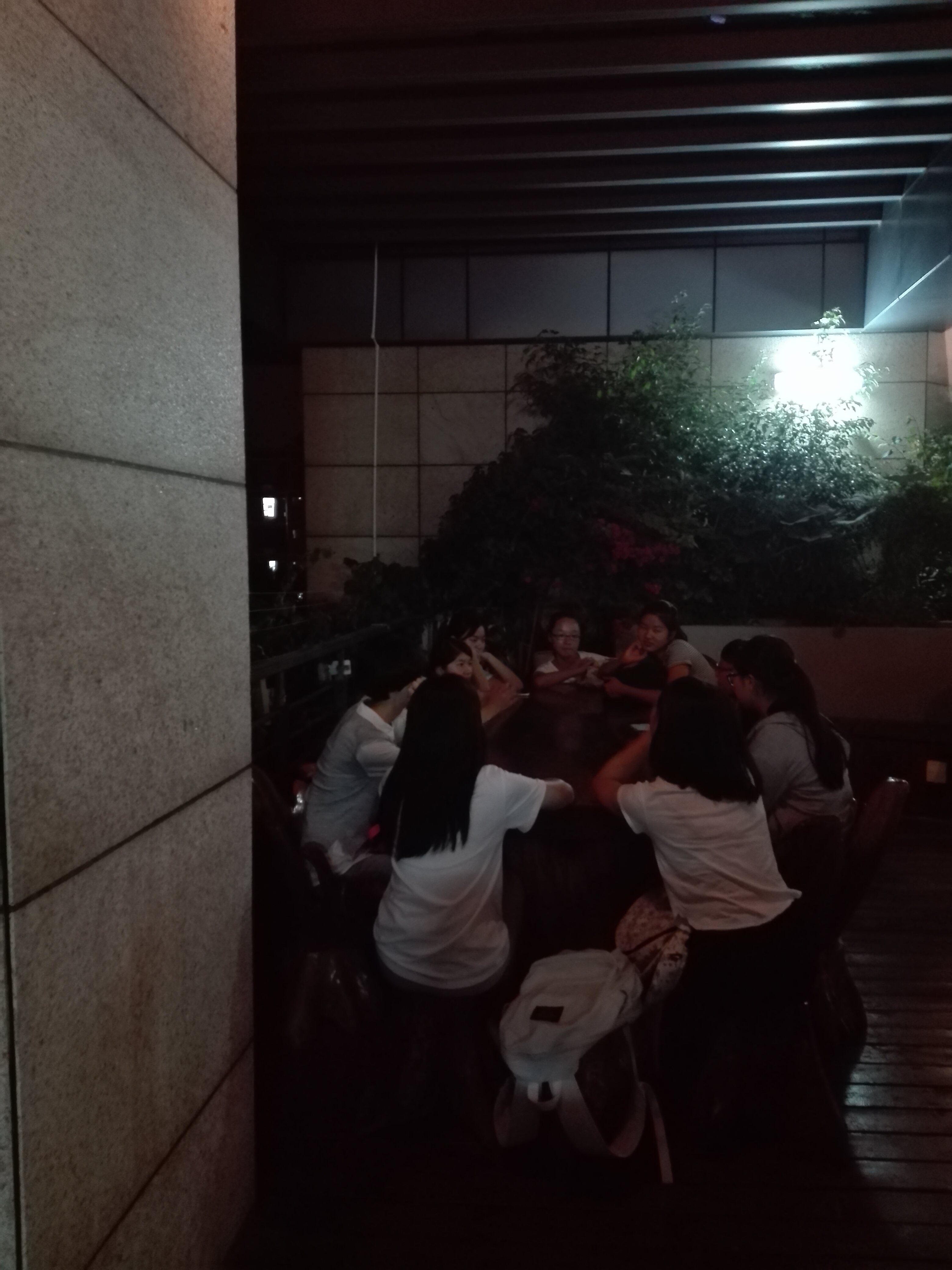 晚上6点50分,前来参加英语角的新、老生和外教陆续出现在了月相园,英语口语协会的成员在在月相园的入口处为他们引导。晚上7点,英语角正式开始,同学们围坐在外教的身旁。首先,外教组织新老同学做了个简单的自我介绍,互相认识熟悉。然后,外教和同学们聊起了暑假的生活,询问同学们暑假过得怎么样,同学们也用英语积极地和大家讲起了自己的暑假生活。虽然很多新生的英语讲的并不是那么的流利顺畅,但是他们并不害怕犯错,依旧热情地向大家表达自己的想法观点。而且外教也鼓励同学们勇敢地表达,对于同学们的错误外教也友好地帮大家指正。夜色朦胧,晚风习习,月相园里大家和乐融融。
