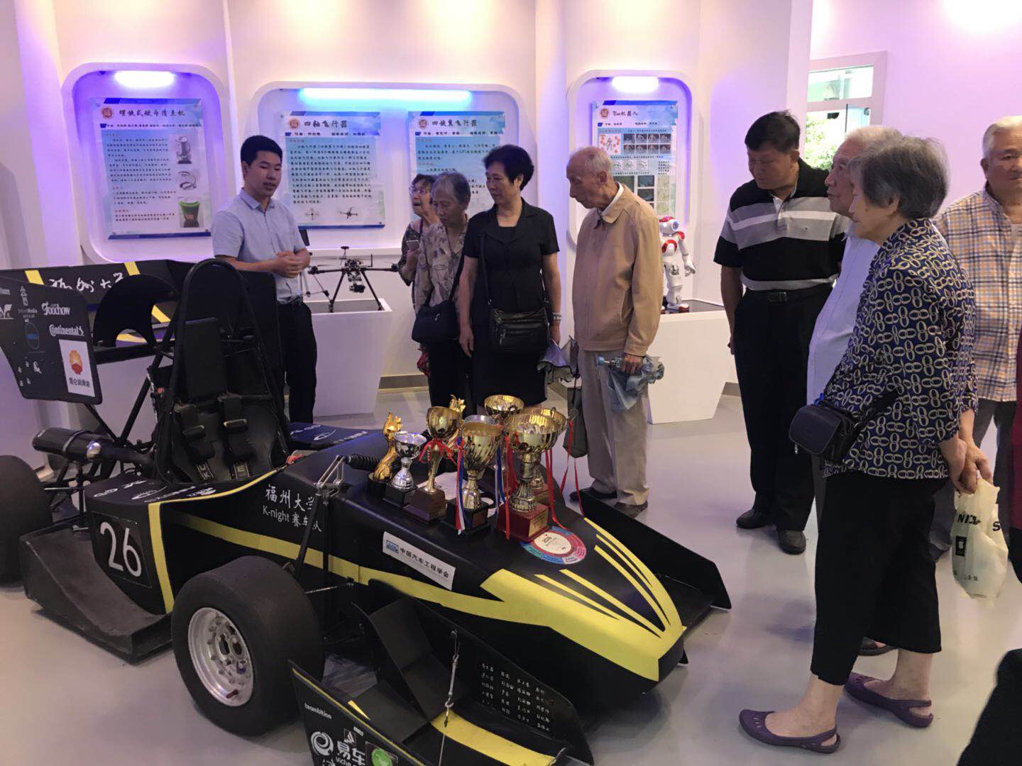 老教师们怀着兴奋的心情迈入地矿博物馆,参观过程中,老教师们认真而专注地欣赏馆中的珍贵的矿石,还不时用手机记录着精彩的瞬间。他们时而兴致勃勃地驻足观看,时而开心地轻声交谈。在机械创新文化馆中,大家在讲解员的引领和讲解下逐一参观了“机器人”、“赛车”、“3D打印”等展示区域,老教师们聚精会神地倾听每个创新作品背后的故事,与最新的前沿科技进行近距离的交流,深刻感受到了机械创新科技的前景和魅力。